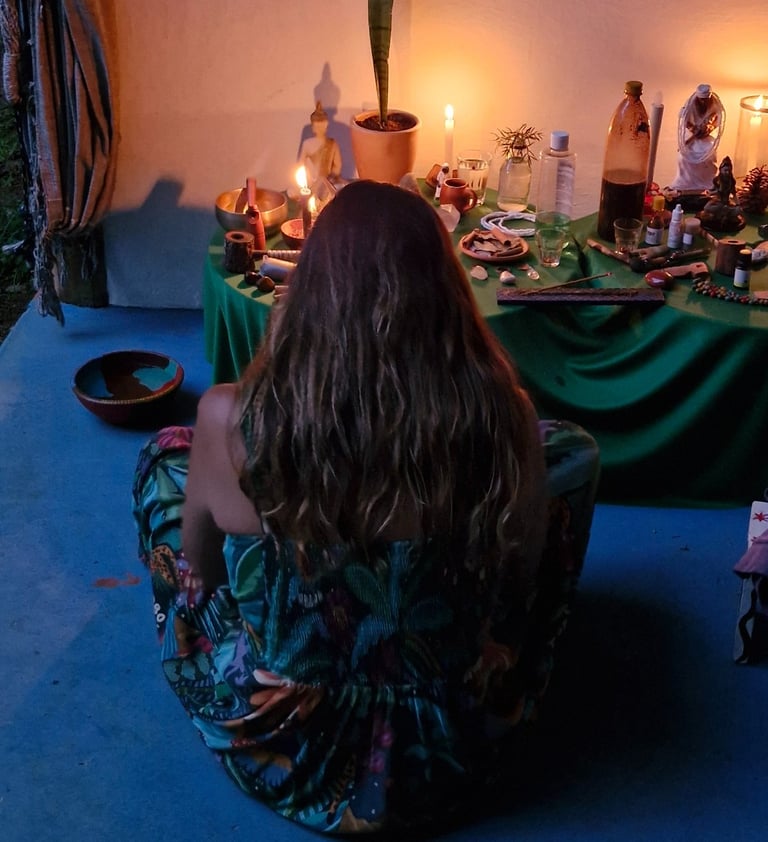 Aqui em Itacaré, encontrei o solo fértil para unir todas as minhas experiências e oferecer atendimentos, rituais e vivências que honram a Terra, as Medicinas e a essência verdadeira que existe em cada pessoa.