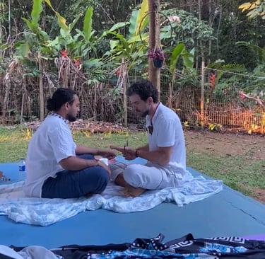 Na Casa Cura, em Itacaré, o rapé é trabalhado com respeito, intenção e consciência, como parte de um caminho de autoconhecimento, cura e reconexão interior.