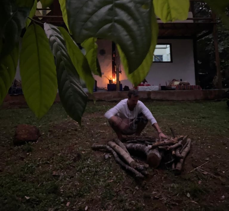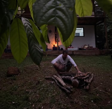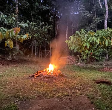 O som dos grilos, o vento, a terra, o fogo — tudo vibra junto com a Ayahuasca, sustentando o campo de cura e permitindo que cada pessoa se sinta parte da própria natureza.