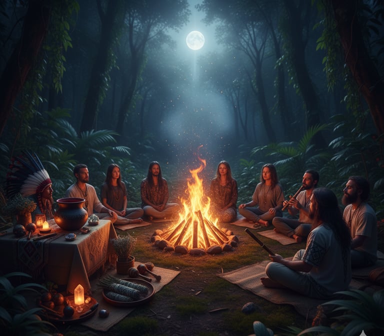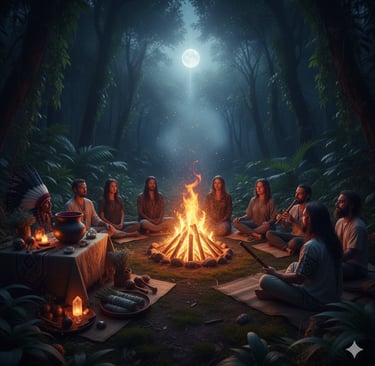 Durante os rituais, o fogo é o grande guardião. Ele purifica, transforma e nos lembra que toda sombra pode ser luz quando olhada com coragem e amor.