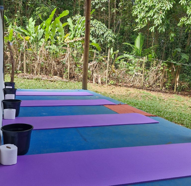 Cada ritual de Ayahuasca é preparado com profundo respeito às medicinas e às pessoas. Há momentos de silêncio, música, partilha e integração. Do altar à fogueira, cada detalhe é cuidado com presença para que o espaço se torne um portal de transformação real.