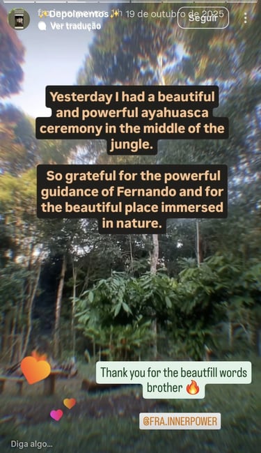 Cada ritual de Ayahuasca é preparado com profundo respeito às medicinas e às pessoas. Há momentos de silêncio, música, partilha e integração. Do altar à fogueira, cada detalhe é cuidado com presença para que o espaço se torne um portal de transformação real.