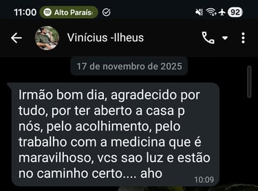 Entre as árvores da floresta de Itacaré, os rituais de Ayahuasca da Casa Cura são espaços sagrados de reconexão com o coração. Trabalhamos com a medicina da Ayahuasca dentro de um caminho universalista, acolhendo todas as tradições e compreendendo que a cura acontece quando nos abrimos à verdade que habita dentro de nós.